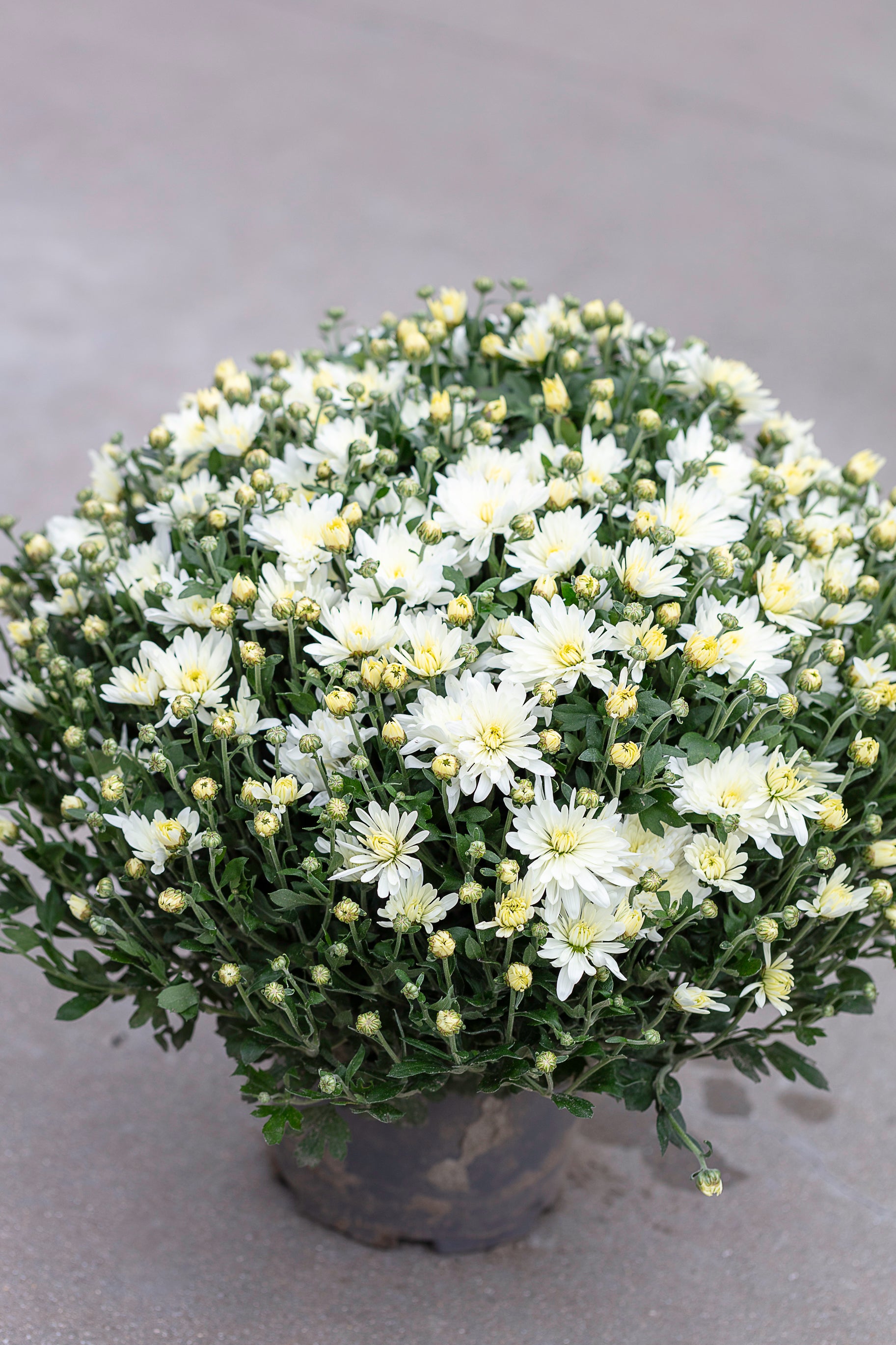 De witte chrysant is een klassieker die symbool staat voor zuiverheid, respect en herinnering. Door de lange bloeiperiode en stevige takken blijft deze plant langdurig stralen.