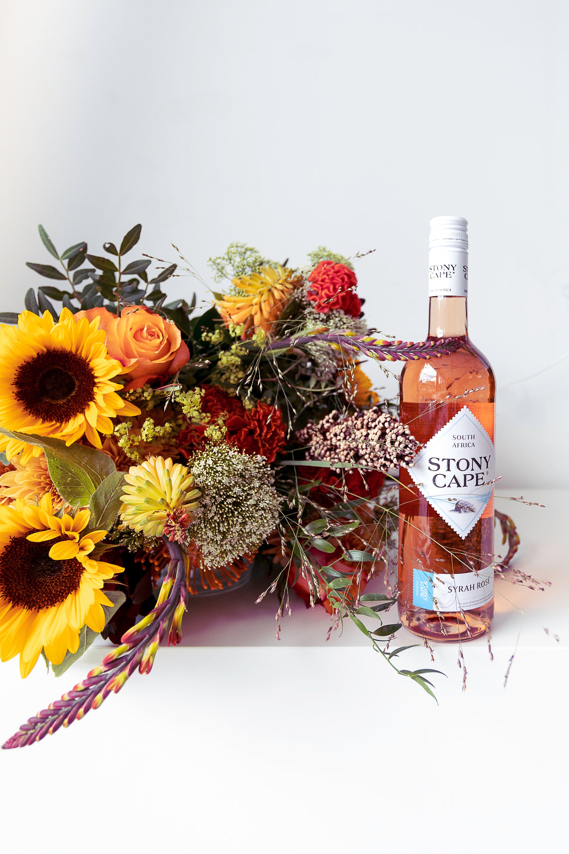 Geschenkpakket Boeket Flower Lady* + Rosé wijn Syrah (Zuid Afrika)